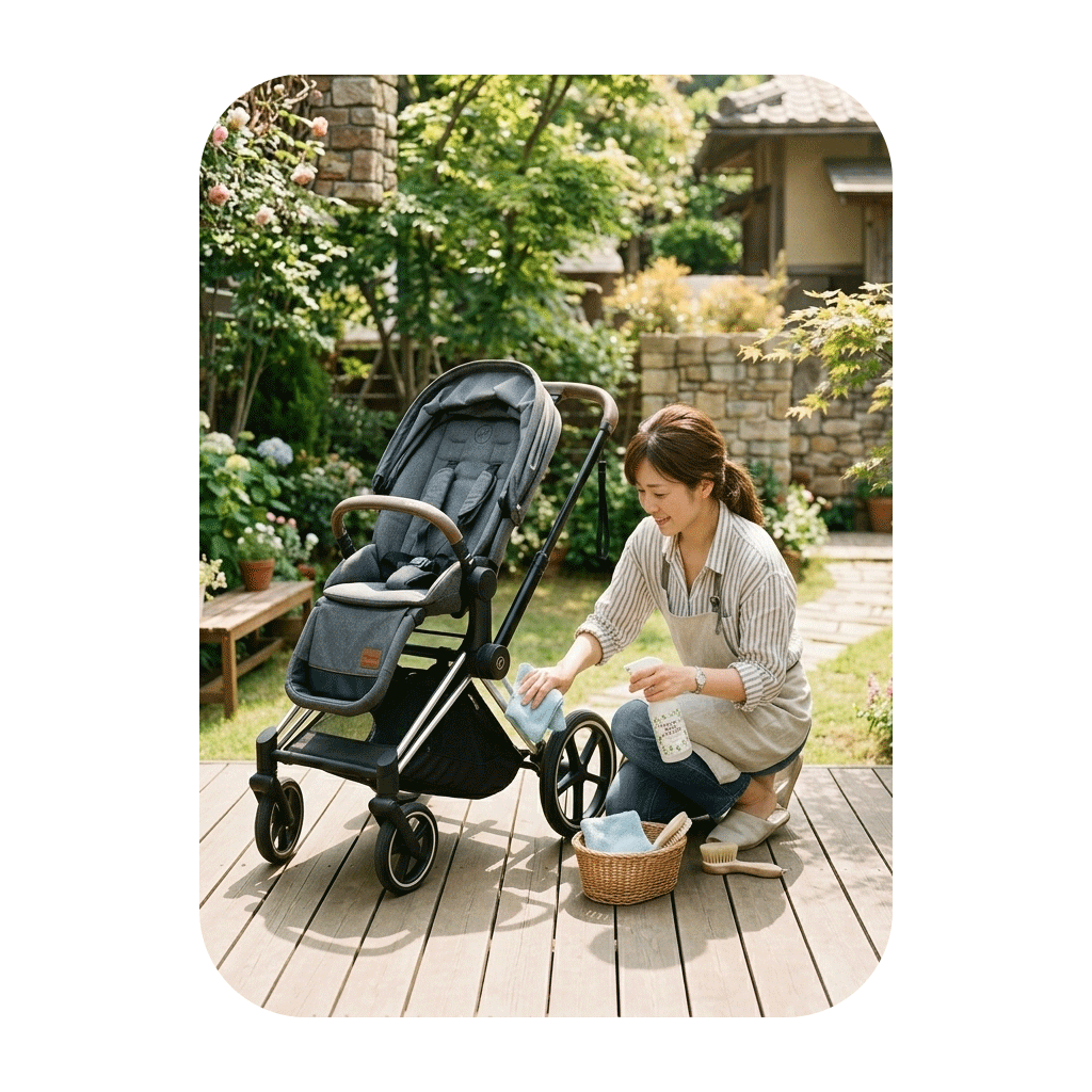 毎日少しずつ汚れが蓄積するベビーカー。こまめな拭き取りで大掛かりな洗浄を予防できます。